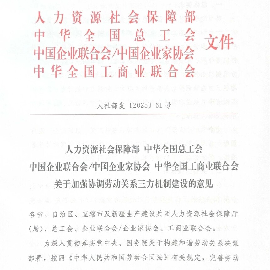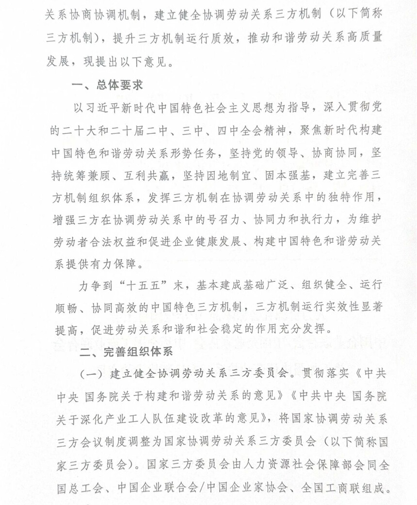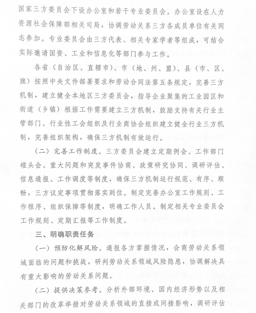 关于加强协调劳动关系三方机制建设的意见